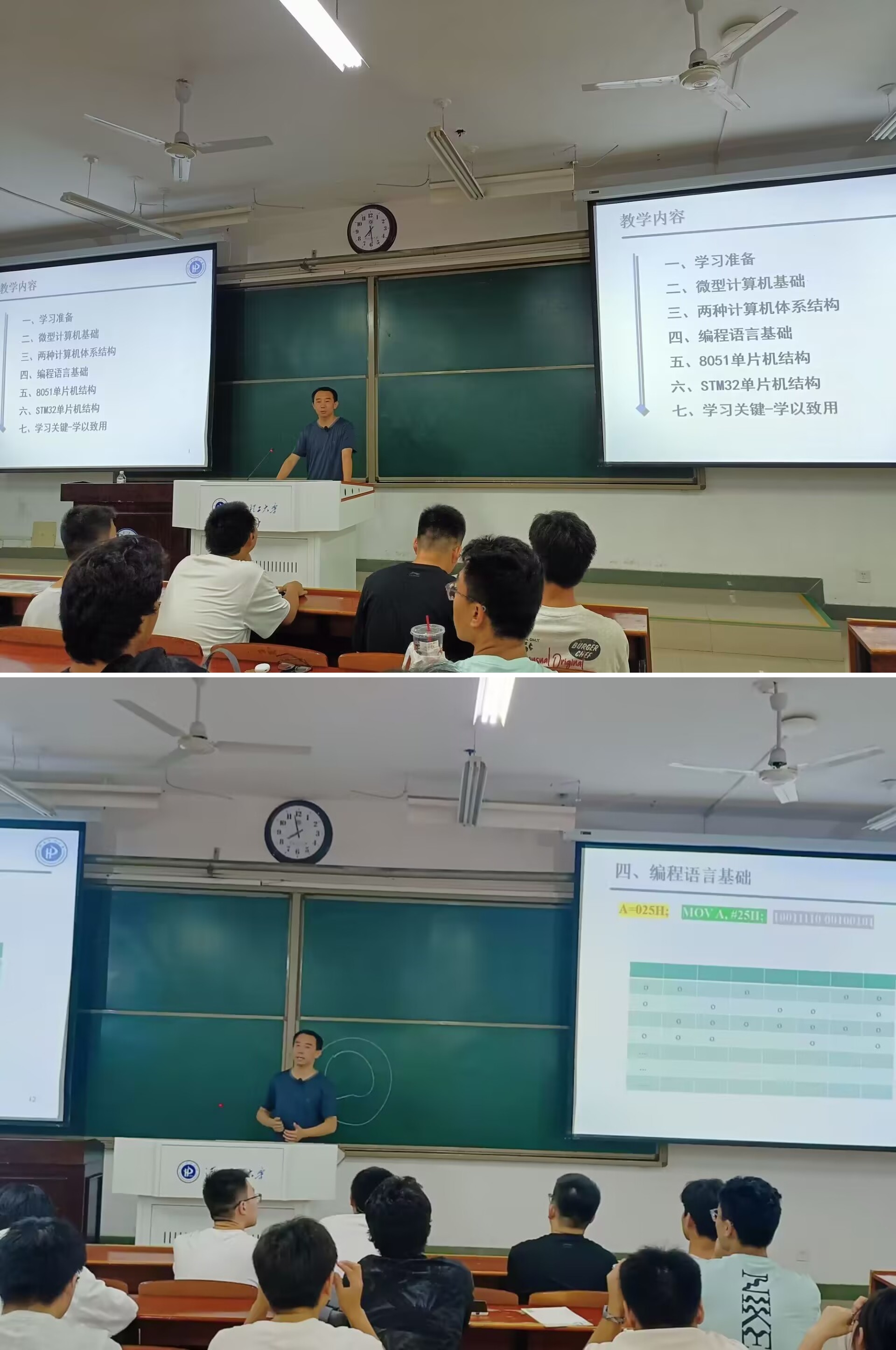 为持续深化党建引领下的专业建设与人才培养融合模式,6月25日晚7时30分,电子信息工程学科竞赛志愿指导服务队在第三教学楼3101教室顺利开展第二期“授人以渔”系列公益讲座,主题聚焦“如何学习单片机”。本次活动吸引了全院50余名学生参与,以大一、大二学生为主,旨在通过系统性指导助力学生突破技术瓶颈,强化工程实践能力。