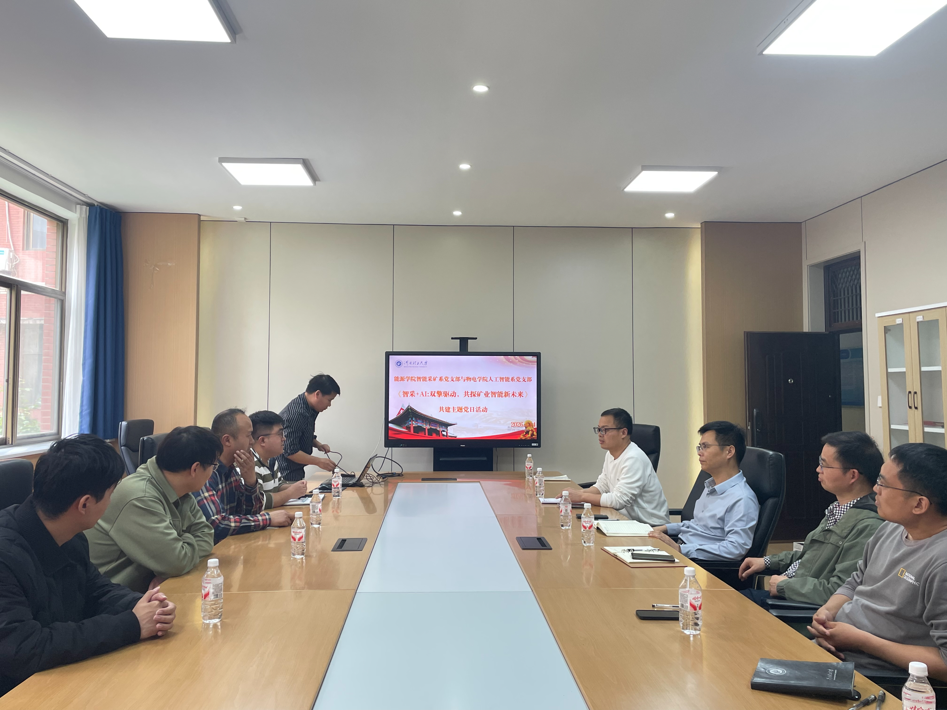 为深入推动党建工作与学科发展深度融合,探索智能采矿与人工智能技术协同创新路径,4月14日下午3时,能源学院智能采矿工程系党支部与物电学院人工智能系党支部在能源学院217会议室联合举办《智采+AI:双擎驱动,共探矿业智能新未来》共建主题党日活动。活动由智能采矿系支部书记神文龙与人工智能系支部书记刘小磊共同主持。