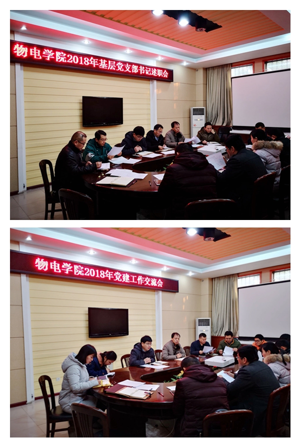 1月2日上午,物电学院党委在院会议室召开了物电学院基层党支部书记述职暨党建工作交流会。会议由该院党委副书记王丙新主持,学院党委书记余本胜及各教工党支部、学生党支部书记等参加了会议。