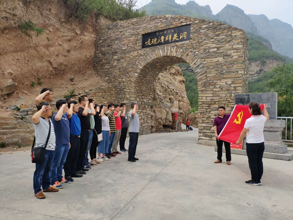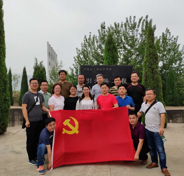 全体党员在引沁灌区管理局观看《激情岁月树丰碑》专题片、参观引沁局文化展厅,对“引沁济蟒”有了更深入更系统的了解。在引沁灌区管理局的工作人员带领下,实地参观东方红渡槽,引沁河口枢纽,引沁渠原址--“唬魂潭”、“群英洞”、河口村水库。在引沁工程最艰险的地方“唬魂潭群英洞”,全体党员重温了入党誓词。穿越行走在明暗相间的9个隧洞间,触摸渠壁上刀劈斧凿留下的印迹,仰望挺立高峻的峭壁断岩,党员们被当年引沁渠上战天斗地的壮举深深感染。