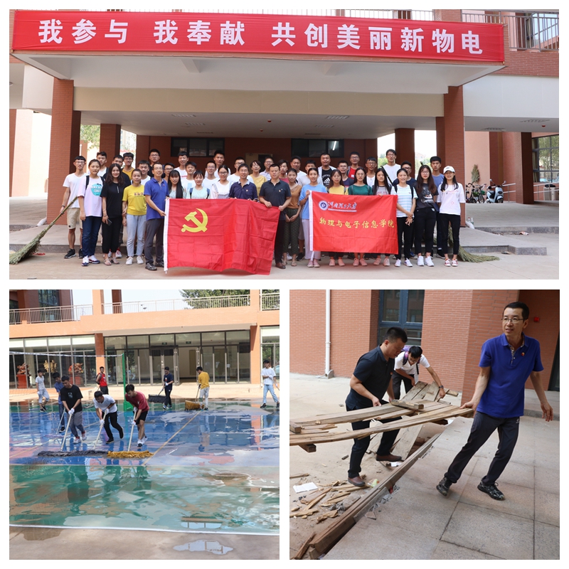 新学期伊始,为营造整洁、优美、卫生、舒适的学习工作环境,物电学院机关党支部和第一学生党支部第二期发展对象30余人于9月6日下午,在学院新办公楼开展了一次“我参与,我奉献,共创美丽新物电”主题党日活动。