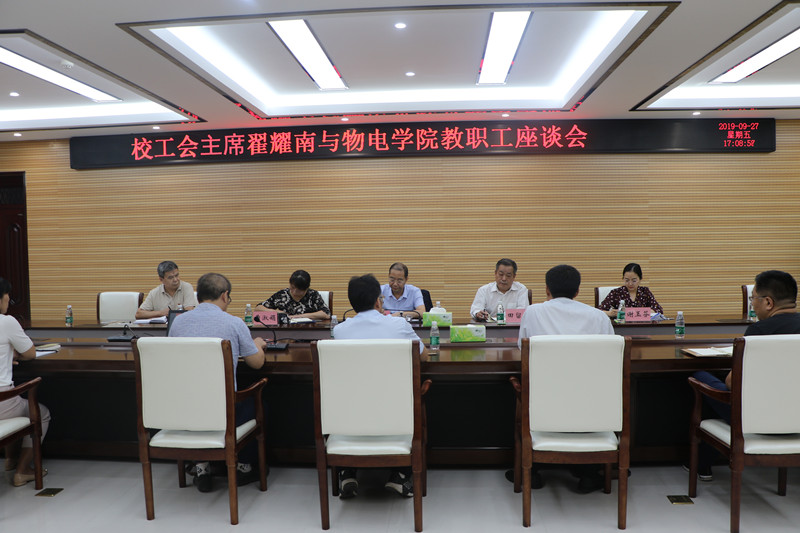 9月27日下午,校工会主席翟耀南一行四人莅临物电学院就我院发展和工会工作开展调研,并在我院235小会议室召开座谈会。学院党政领导及部分教师代表参加座谈,会议由我院党委书记王书卿主持。