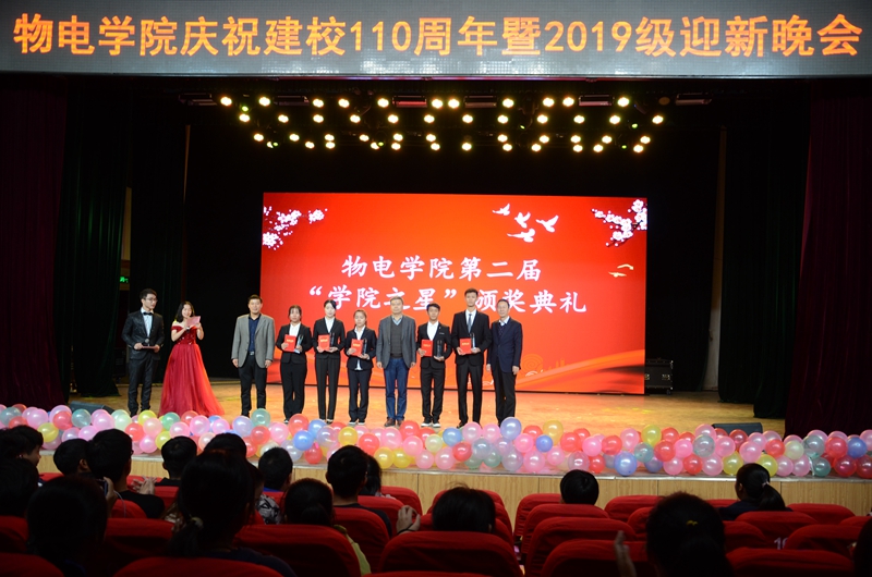 晚会期间举行了“学院之星”颁奖典礼。电科1701班的赵凯悦、物理1701班的杨爽、实验1801班的安阳阳、电信1705班的徐学广、电科1703班张文琪等五名学生凭借积极向上的精神风貌和勤奋努力的学习态度,分别荣获“勤奋好学”之星、“科技创新”之星、“自强自立”之星、“优秀学干”之星和“爱心奉献”之星称号。