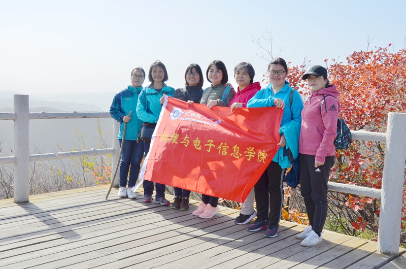 为丰富我院女教工业余文化生活,引导大家养成积极向上、健康的生活方式,物理专业工会于11月2日组织全体女教工前往靳家岭风景区开展“相约金秋、共赏红叶”活动。活动期间,大家在和煦的阳光下,漫步在似火的红叶丛中,感受人在画中游的意境。此次活动既使大家欣赏了祖国的大好河山,也使大家从繁忙的工作和生活中抽身,陶冶了情操,愉悦了身心。