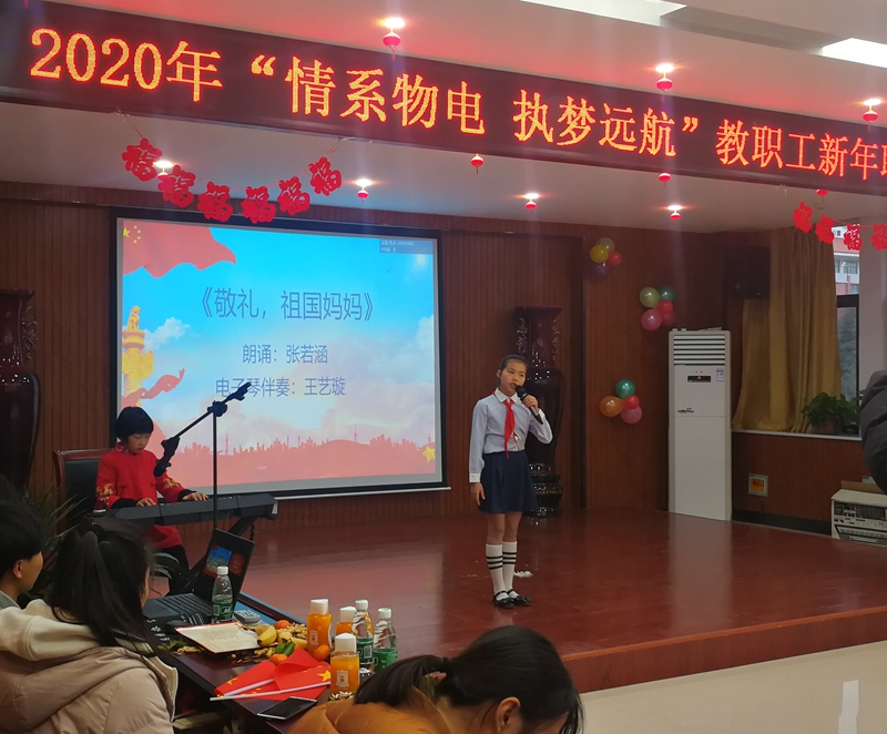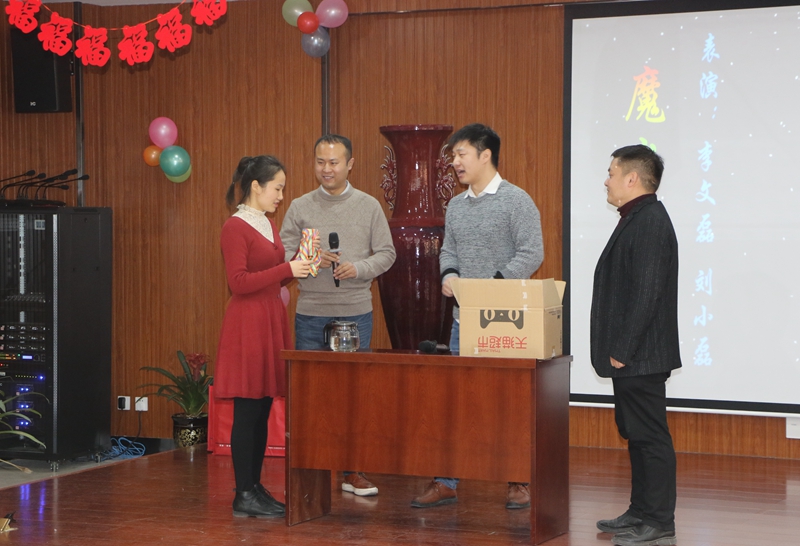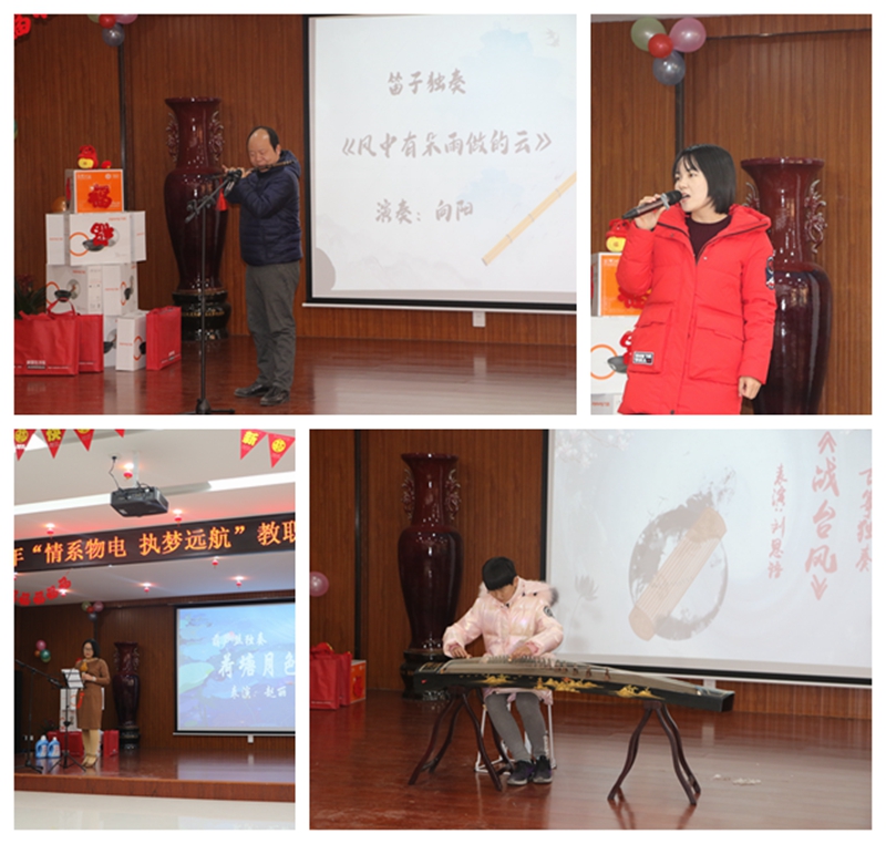 元旦联欢会在激情热烈的氛围中拉开序幕。学院领导、教职工们经过精心准备,编排了一个个精彩的节目,为大家献上了歌曲、朗诵、魔术、葫芦丝独奏等形式多样的视听盛宴,联欢会中的抽奖和游戏环节也调动了每位教职工参与热情,将现场氛围不断拉向高潮。王书卿等院领导为大家带来歌曲《团结就是力量》,激昂的歌曲展现了院领导团结奋进的决心;电科系老师带来的朗诵《土豆的故事》引得哄堂大笑;机关部门6位教职工表演的三句半《我爱祖国》用幽默诙谐的方式叙述了祖国近年来取得的骄人成就,表达了对祖国深深的爱;赵丽老师带来的葫芦丝独奏和向阳老师的笛子独奏让大家连连称赞,跳跃的音符和动人的旋律展现了我院教职工的多才多艺;大学物理系全体教师合唱的《我和我的祖国》唱出了对祖国赤诚的爱;李文磊等四位老师为大家表演了将一杯透明的水变成不同颜色,用一根棍子变玫瑰花等小魔术,让大家称奇。节目最后,部分教职工子弟也为大家献上了古筝独奏、配乐诗朗诵、歌曲等节目,大家在热烈的氛围中一同迎接新年的到来,此次联欢会在歌曲《相亲相爱的一家人》中落下帷幕。