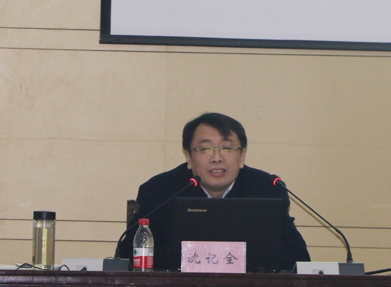 教务处处长沈记全在圆形报告厅作题为《线上线下课程建设》的专题报告
