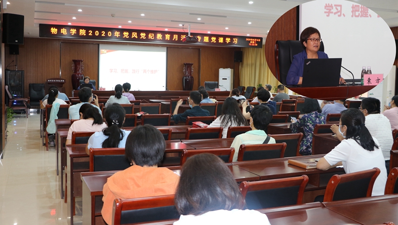 为贯彻落实学校党委全面从严治党各项工作部署,不断压实疫情防控政治责任,根据学院党风党纪教育月活动安排,6月16日下午,学院党委邀请校图书馆党总支书记袁方教授为广大党员上了一堂生动的专题党课。党委书记王书卿主持学习,大学物理系、应用物理系和电信工程系30余名党员参加学习。