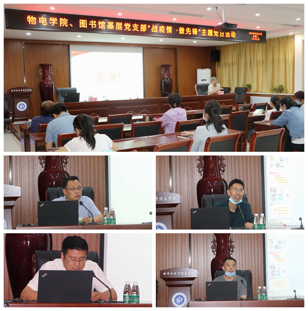 6月16日下午,物电学院与图书馆基层党支部以“战疫情·做先锋”为主题在学院226会议室共同开展了一次特色党日活动。