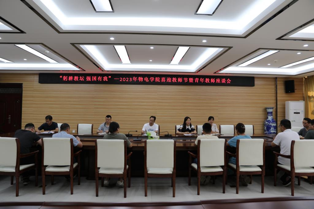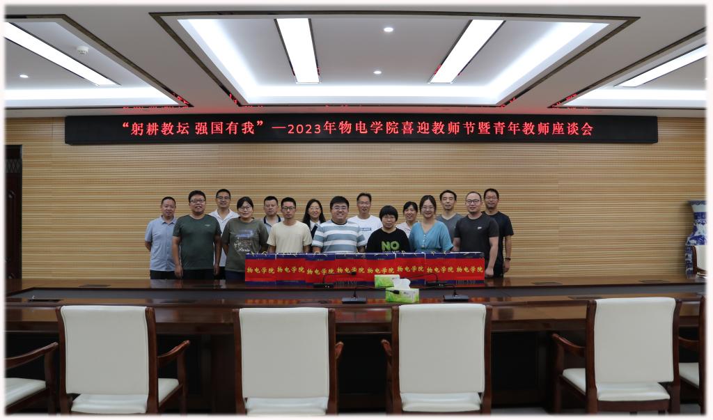 在我国第39个教师节到来之际,为深入推进学习贯彻习近平新时代中国特色社会主义思想主题教育,大力推进教育强国、科技强国、人才强国建设,引导学院广大教师树立立德树人、自信自强的精神风貌,营造尊师重教的良好氛围,物电学院组织召开“‘躬耕教坛 强国有我’---2023年物电学院喜迎教师节暨青年教师座谈会”。学院党委书记张长森等领导、各系主任及学院青年教师参加座谈会,会议由院党委副书记、院工会主席康俊亚主持。