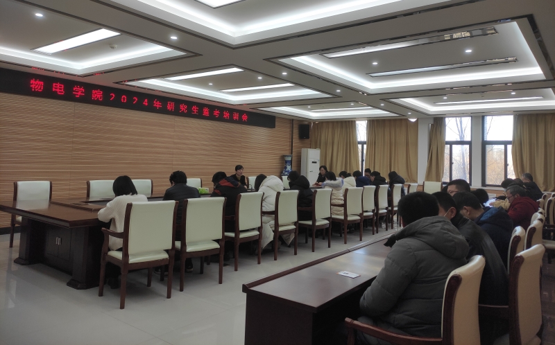 为加强考务管理,严肃考试纪律,确保2024年研究生监考工作安全平稳进行,物电学院于2023年12月21日上午10:00在综合实验楼235会议室召开了研究生监考培训会,学院领导及全体监考老师参加了此次会议。