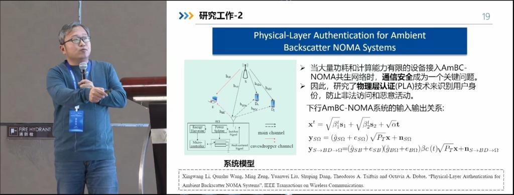 李兴旺老师以“面向6G的无源通信技术”为题,就环境反向散射赋能的物理层安全通信机制、智能超表面辅助的无线供能及NOMA网络资源优化等问题进行专题报告。两名研究生全程参加会议,认真聆听了与会专家的报告。
