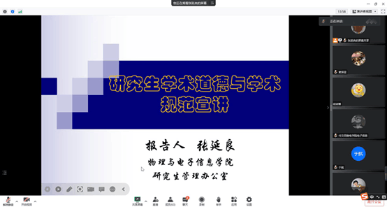 为进一步引导学院研究生树立科研诚信意识、提高科学道德素养,12月2日上午,我院开展2022年度研究生科学道德和学风建设宣讲会。此次宣讲会由学院研究生管理办公室张延良教授以线上腾讯会议的形式主讲,2022级全体研究生在线参与。