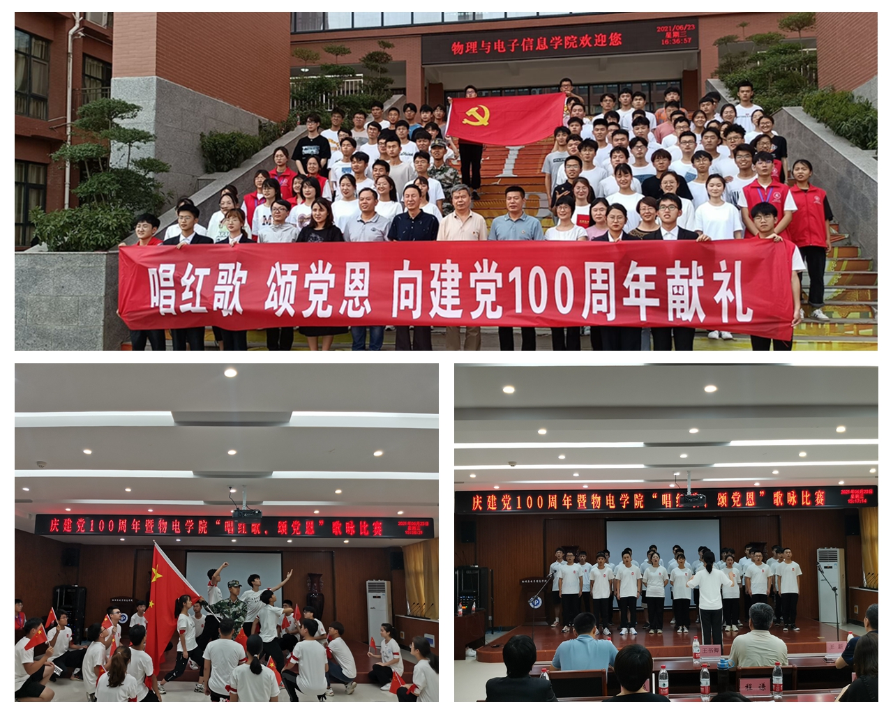 在中国共产党成立100周年之际,我院通过红歌比赛,热情讴歌100年来党的奋斗历程和辉煌成就,引导广大学生坚定不移听党话,跟党走,用实际行动践行初心使命。