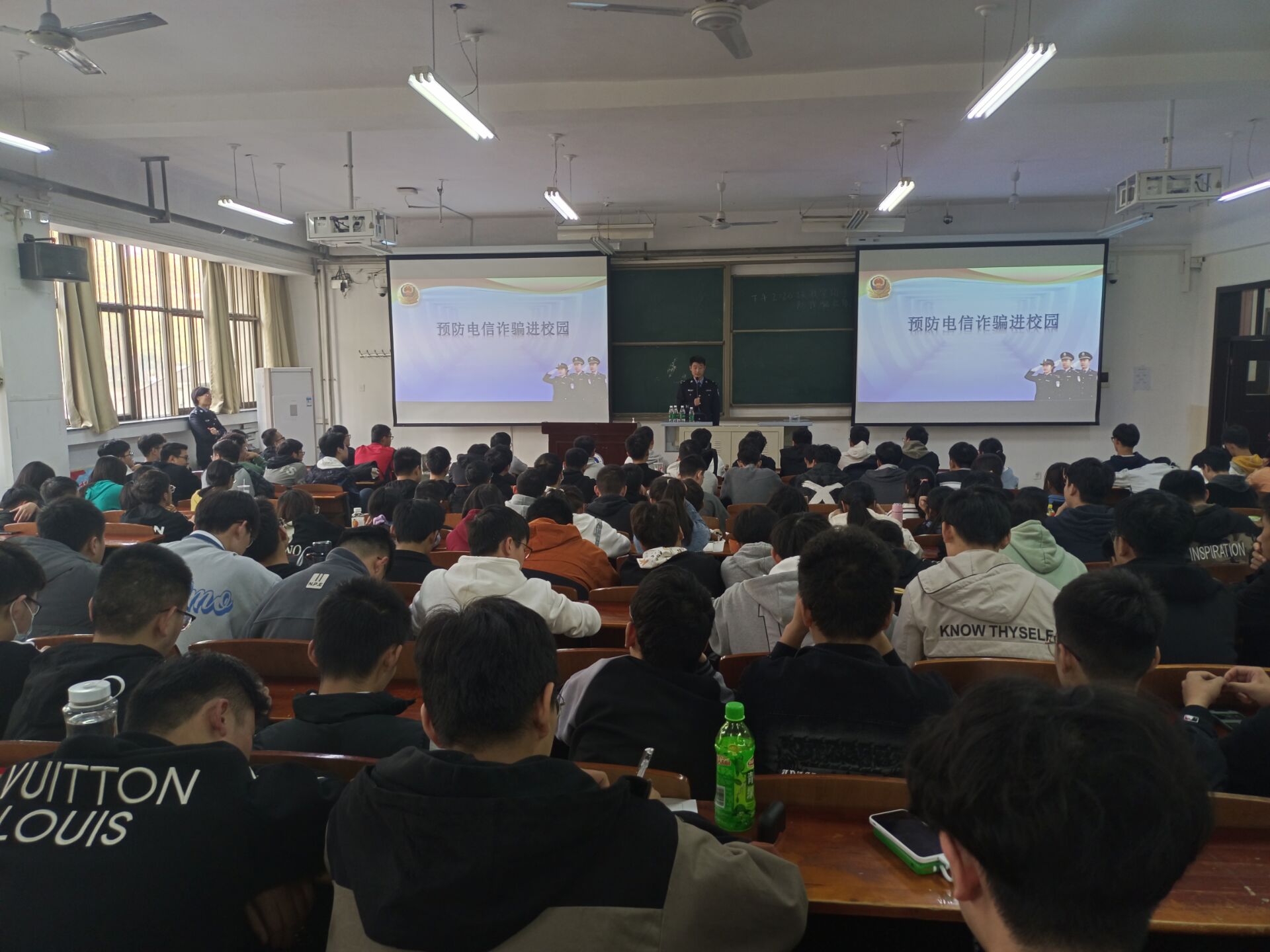 为提高学生识别和预防电信诈骗能力,推动反诈骗宣传教育工作常态化,11月2日下午,学院邀请市公安局城乡一体化示范区分局民警,在三号教学楼开展“预防电信诈骗进校园”主题宣讲活动。学院共计1100余名学生参加此次活动。
