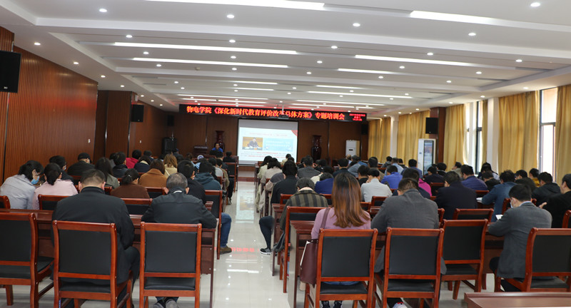 为深入学习贯彻习近平总书记关于深化新时代教育评价改革的重要指示批示精神,全面落实中共中央、国务院《深化新时代教育评价改革总体方案》,按照学校统一部署要求,3月30日下午,学院在综合实验楼226会议室召开《深化新时代教育评价改革总体方案》专题培训会。院长张长森在培训会上作了总体方案解读报告,全体教职工参加培训。