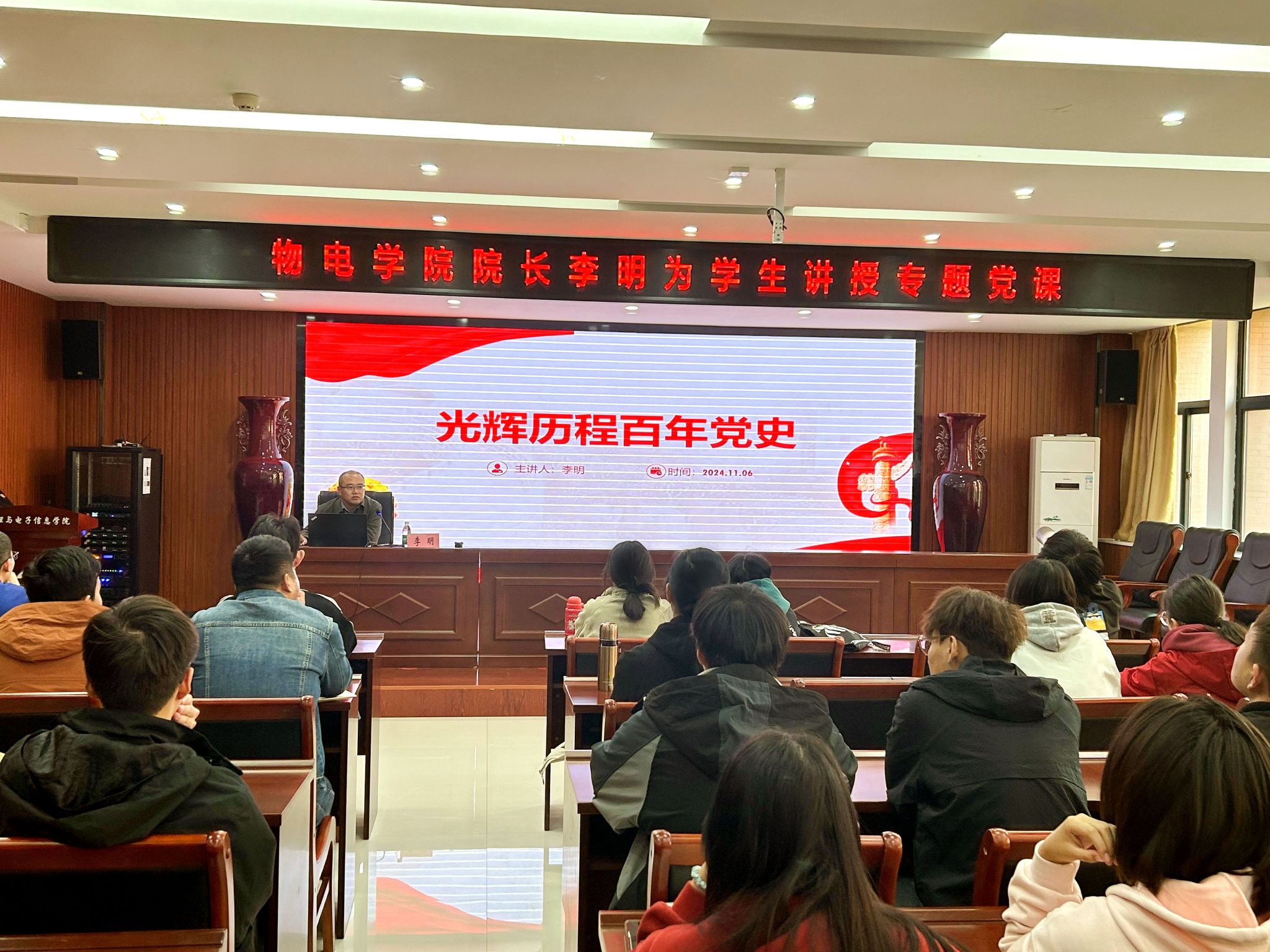 为了进一步加强物电学院入党积极分子的党性修养,提高其政治觉悟和思想认识,11月6日,学院在综合实验楼226会议室举行“光辉历程百年党史”专题党课。本次党课由院长李明主讲,本期为2024年度第二批入党积极分子参加党课。