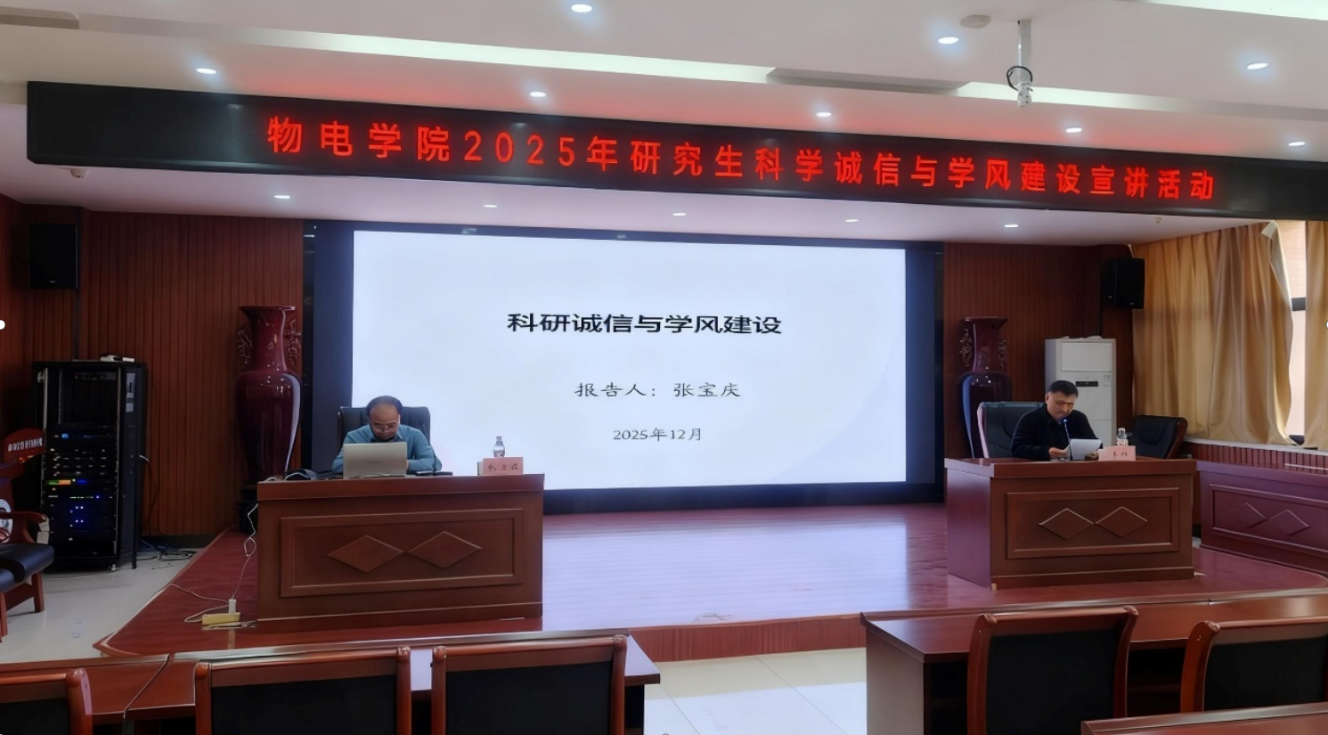 为强化研究生科研诚信意识,筑牢学术道德底线,12月3日下午,我院在学院大会议室226举办“科研诚信与学风建设”专题报告。特邀校学术委员会秘书处主任、科技处副处长张宝庆教授主讲,学院副院长李辉主持,近100名研究生参会。