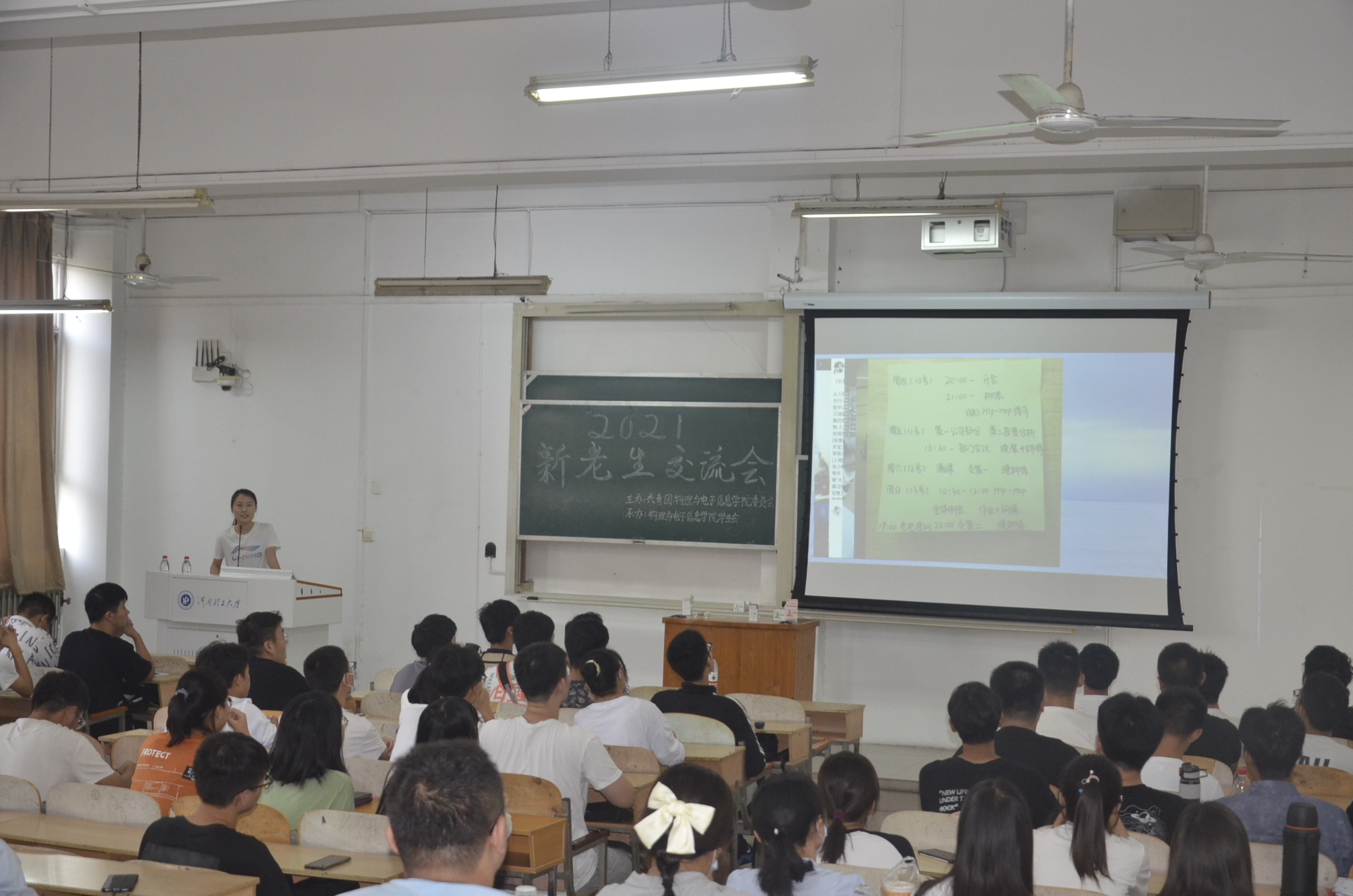 为使2021级新生尽快融入大学生活,10月2日上午,我院于理化楼205室召开2021年新老生经验交流会。本次会议由院团委主办、学生会承办。学生会成员刘一帆主持,2021级200余名新生代表参加了会议。