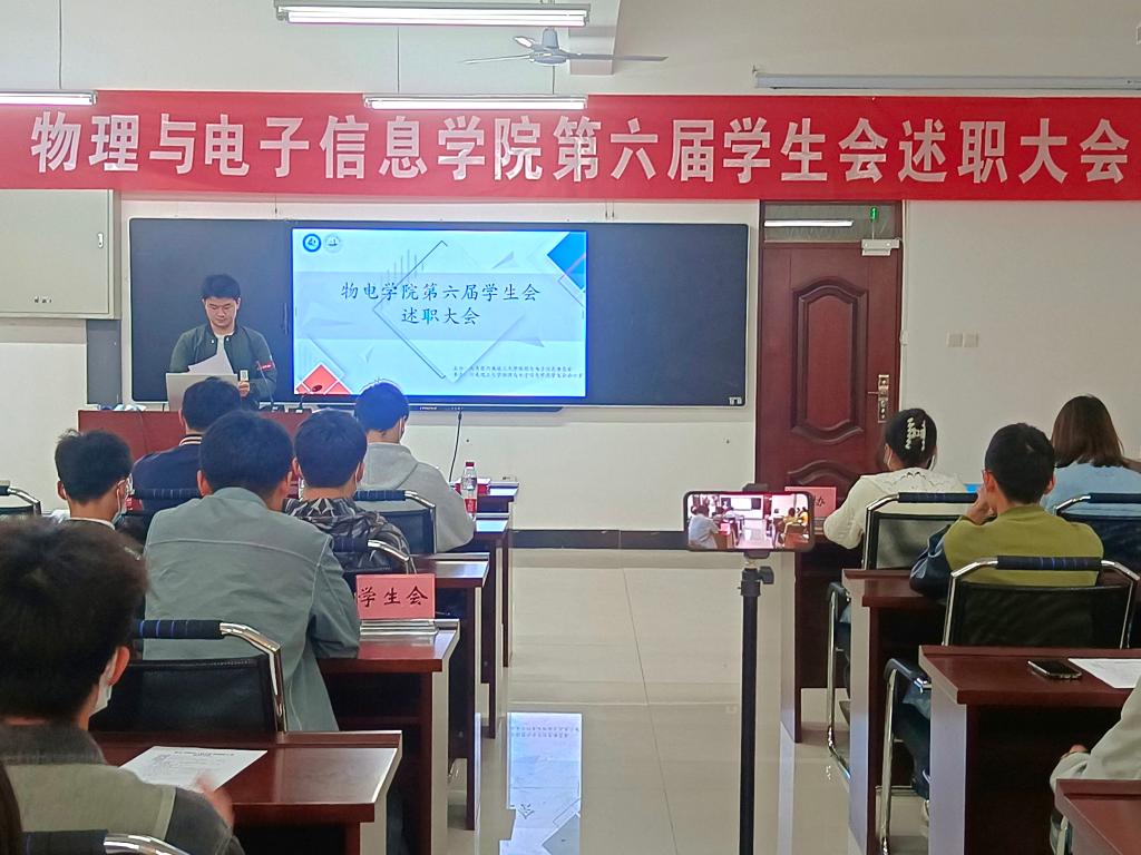 5月14日下午,我院第六届学生会述职大会于综合实验楼227室召开。学院团委书记霍静娟、第六届学生会全体成员,院团委、院青协学生干部代表参加了此次会议。会议由我院团委主办、学生会承办。