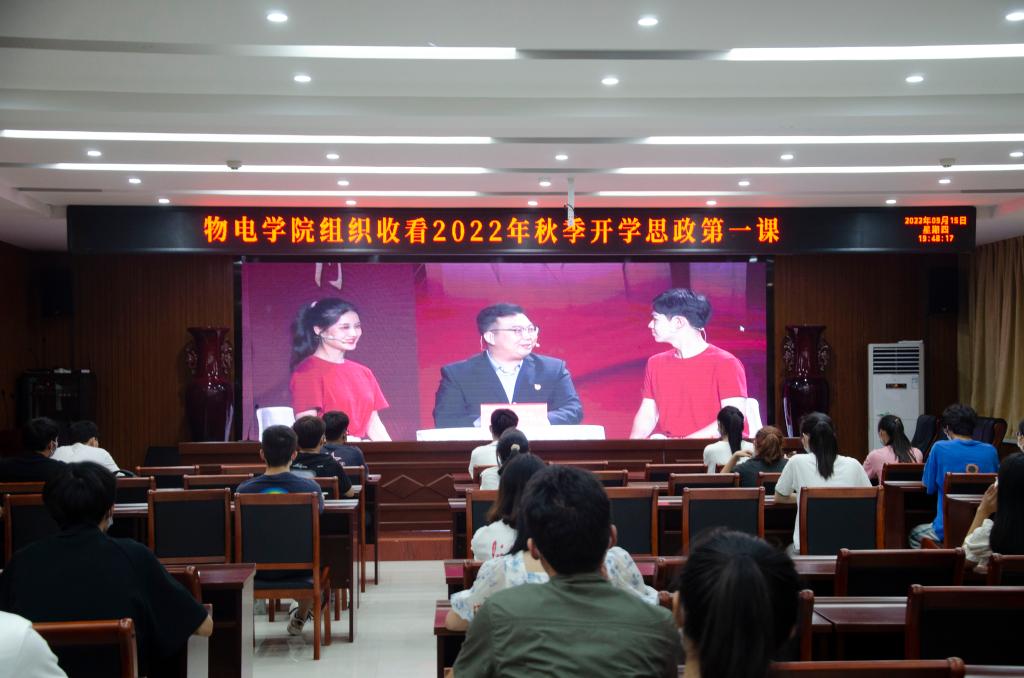 9月15日晚,我院学生会组织学生代表于院楼226观看主题为“追寻足迹看我壮丽河山,牢记嘱托践行立德树人”的2022秋季开学第一课。
