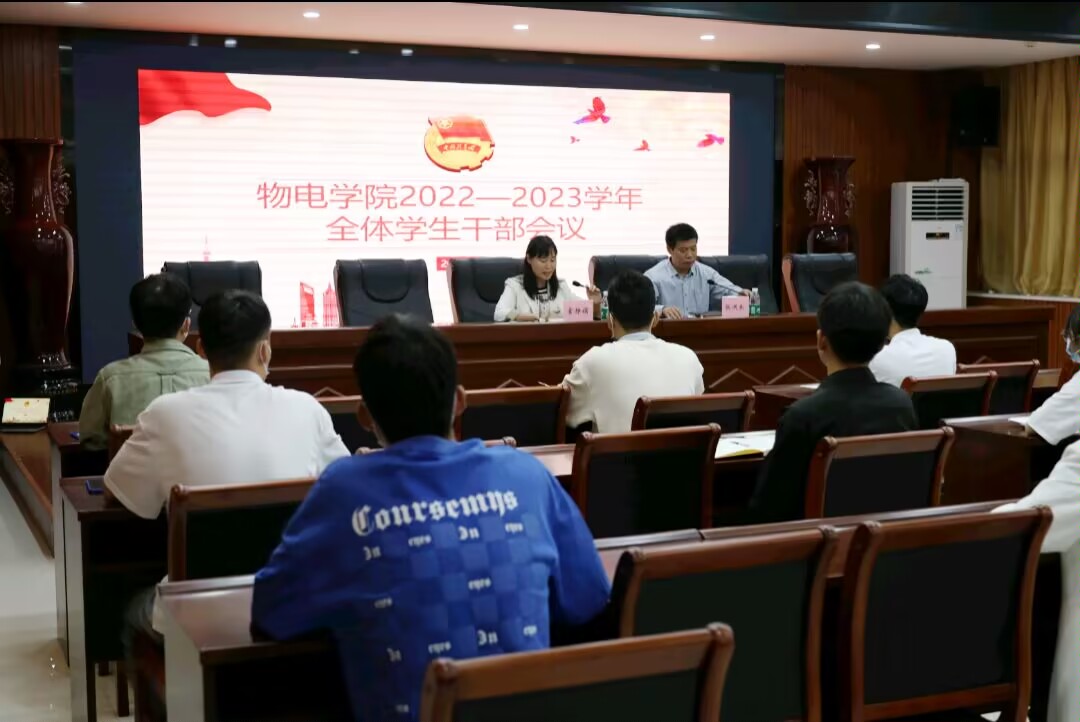 9月24日下午,我院团委于综合实验楼226会议室召开全体学生干部会议。本次会议由院团委书记霍静娟主持,院党委副书记张洪良参加会议,学院研究生会、学生会、青协、团委办公室,以及光电科技协会全体副部级以上学生干部参会。