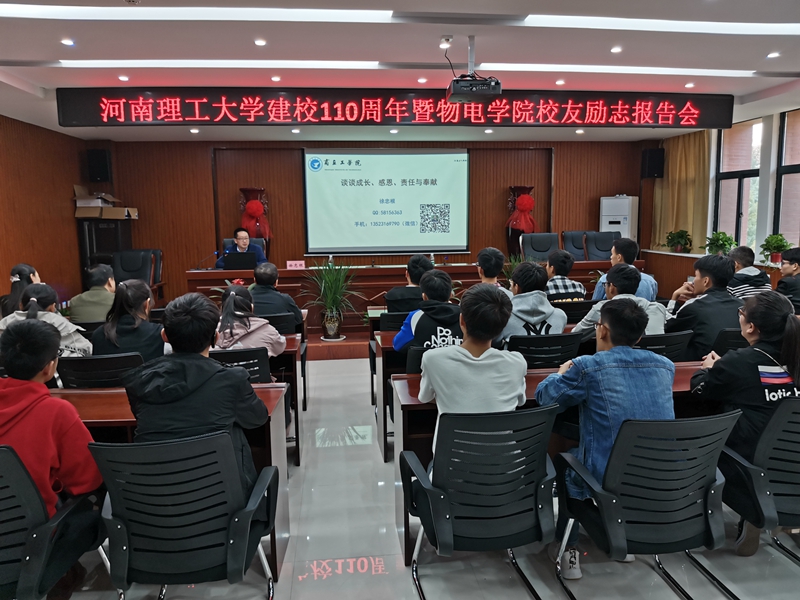 10月19日下午,在全校师生喜迎建校110周年之际,我院在学院楼大会议室成功举办了河南理工大学110周校庆暨物电学院校友励志报告会,此次报告会由优秀校友徐忠根主讲,副院长李宝华主持,全体研究生参加了此次报告会。