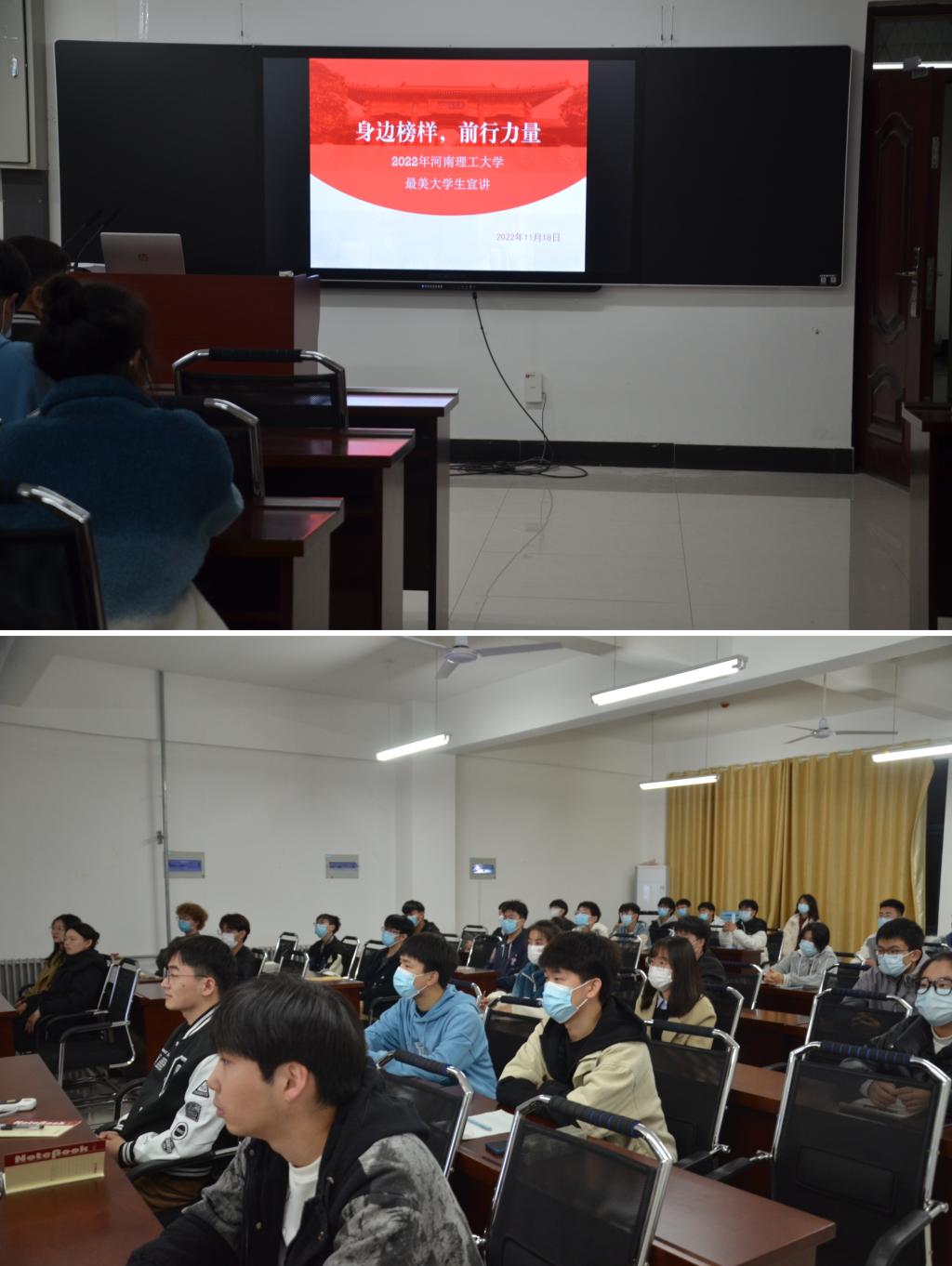 为展现我校青年大学生的责任担当和榜样示范,11月18日晚,由学生工作部(处)主办的2022年最美大学生宣讲活动在学院227室举行。我院2022级部分学生代表参加了本次报告。
