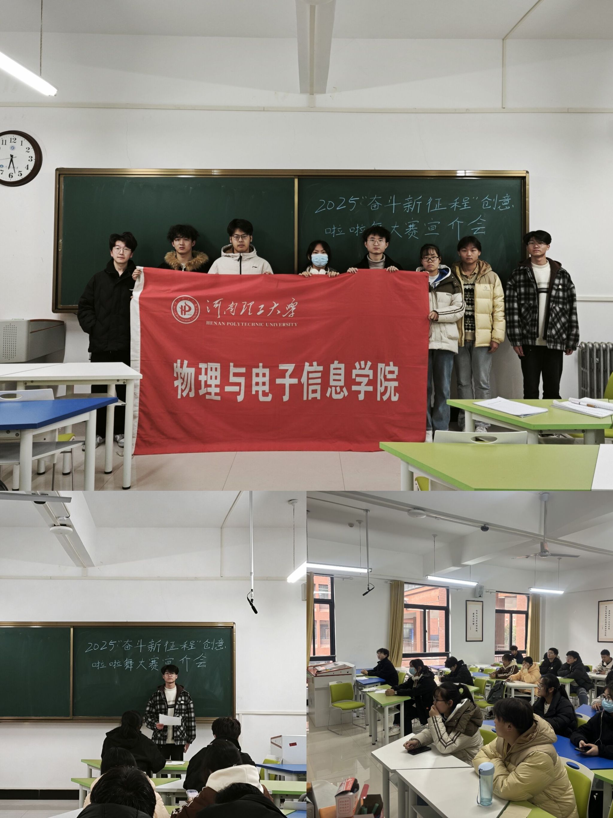 为鼓励广大青年以啦啦舞为载体,展现青春风采,弘扬奋斗精神,增强团队合作意识,为新征程注入活力,我院于3月4日下午在综合实验楼201室举办了2025“奋斗新征程”创意啦啦舞大赛宣介会。物电学院24级各班班长和团支书参与了此次宣介会。