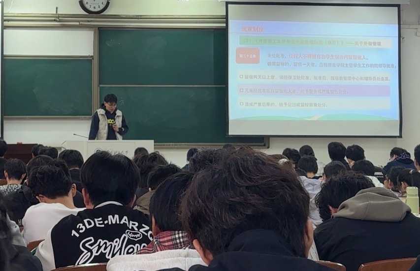 为进一步压实宿舍安全管理责任、提升宿舍长安全履职能力,11月4日下午,我院于3101教室顺利召开宿舍长安全培训会。本次会议由辅导员严康华老师主讲,23、24、25级全体宿舍长参加。