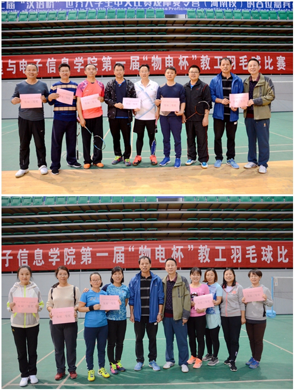 为了丰富学院教职工业余文化生活,10月20日下午,学院工会在学校体育馆举办了首届“物电杯”教工羽毛球比赛。院领导张长森、王丙新、王新出席活动,学院7个工会小组共计44名老师报名参加比赛。