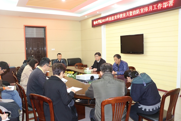 为增强教职工法律意识及消防安全意识,推进学校法治宣传教育和消防安全工作,11月8日下午,我院在小会议室召开2018年法治宣传月暨消防安全月工作部署会。院党委书记余本胜、党委副书记王丙新以及相关负责人参加了会议。会议由院党委书记余本胜主持。