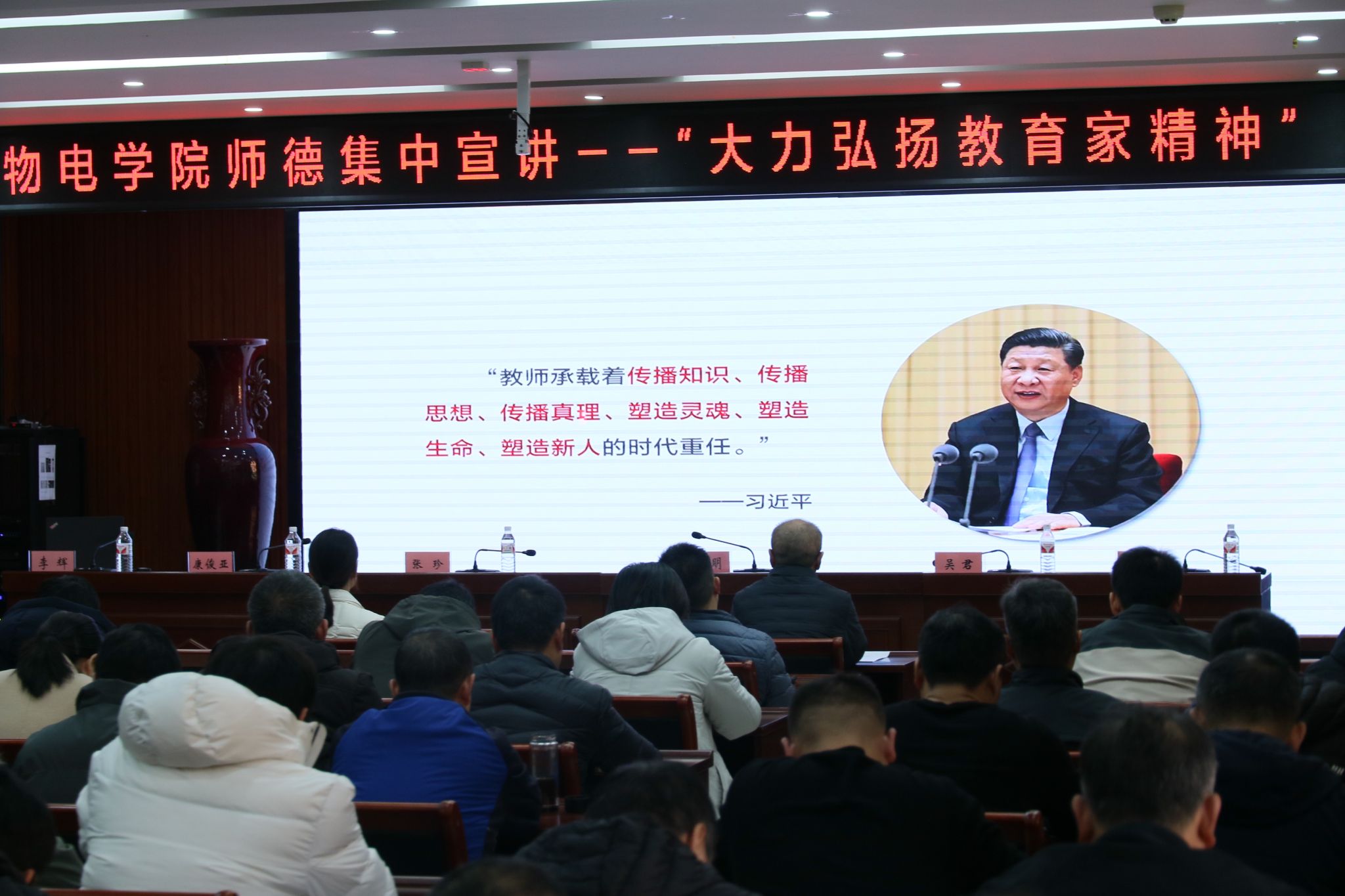 为贯彻落实习近平总书记关于教育的重要论述,激励教师感悟教育家精神内涵,12月10日下午,我院于综合实验楼226室开展师德集中宣讲活动。我院全体教师参与此次活动。