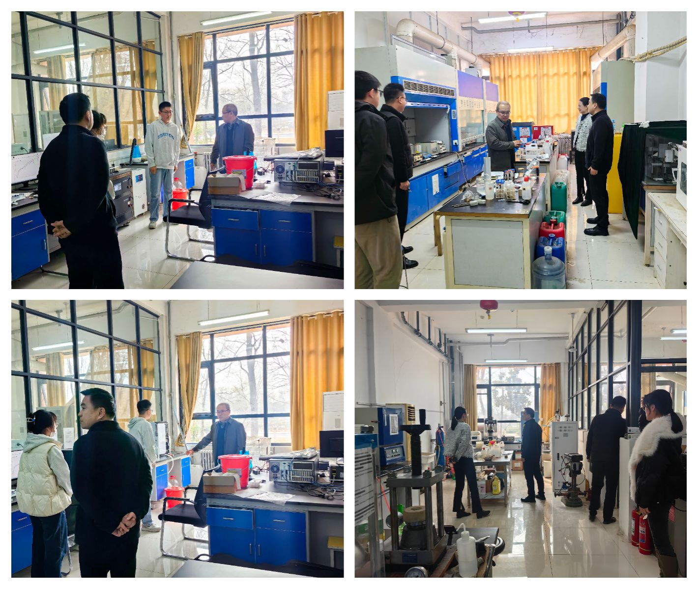 2025年2月28日下午,物电学院党委书记张珍、院长李明、副院长李辉带领党政办工作人员,对学院教研室、科研团队实验室以及研究生学习室进行了全方位、细致入微的安全排查行动。