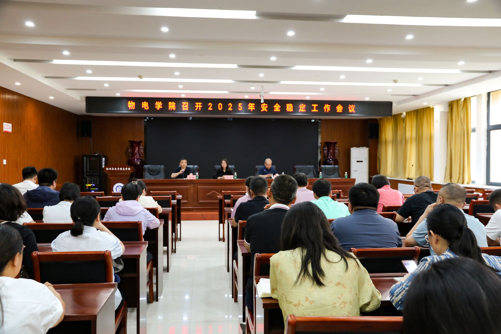 会上,李明就当前安全稳定工作提出三点明确要求。首先,全院上下必须坚决守住意识形态安全阵地。他强调,全体教职工要严格遵守中央八项规定,时刻保持思想上的清醒与坚定,切实守好思想关。尤其在端午佳节即将来临之际,更要不折不扣地贯彻相关规定,党内外人士要坚决与违法乱纪现象作斗争,营造风清气正的节日氛围。其次,针对近期气候现象多变的情况,李明要求相关部门严格做好防汛防灾安全工作。他指出,要密切关注天气变化,提前制定应急预案,加强校园设施的检查与维护,确保师生生命财产安全。各部门需协同配合,形成工作合力,切实保障校园安全稳定。最后,李明提到,临近毕业季,各部门也要高度重视在校生及毕业生的安全工作。他要求从学生离校、档案寄送、就业指导等各个环节入手,确保不出现任何纰漏,帮助学生顺利度过毕业季。
