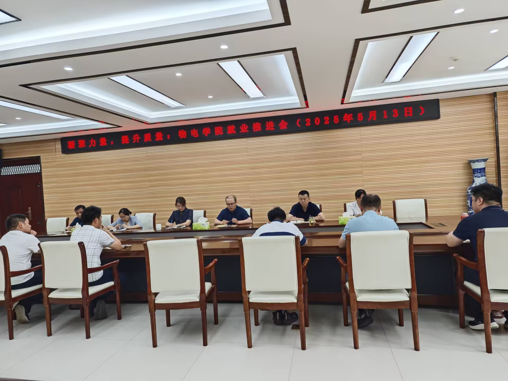 为切实提升毕业生就业质量,物电学院于5月13日召开了2025届毕业生就业推进会。学院领导、各系室负责人以及毕业班辅导员齐聚一堂,共同探讨毕业生就业工作。
