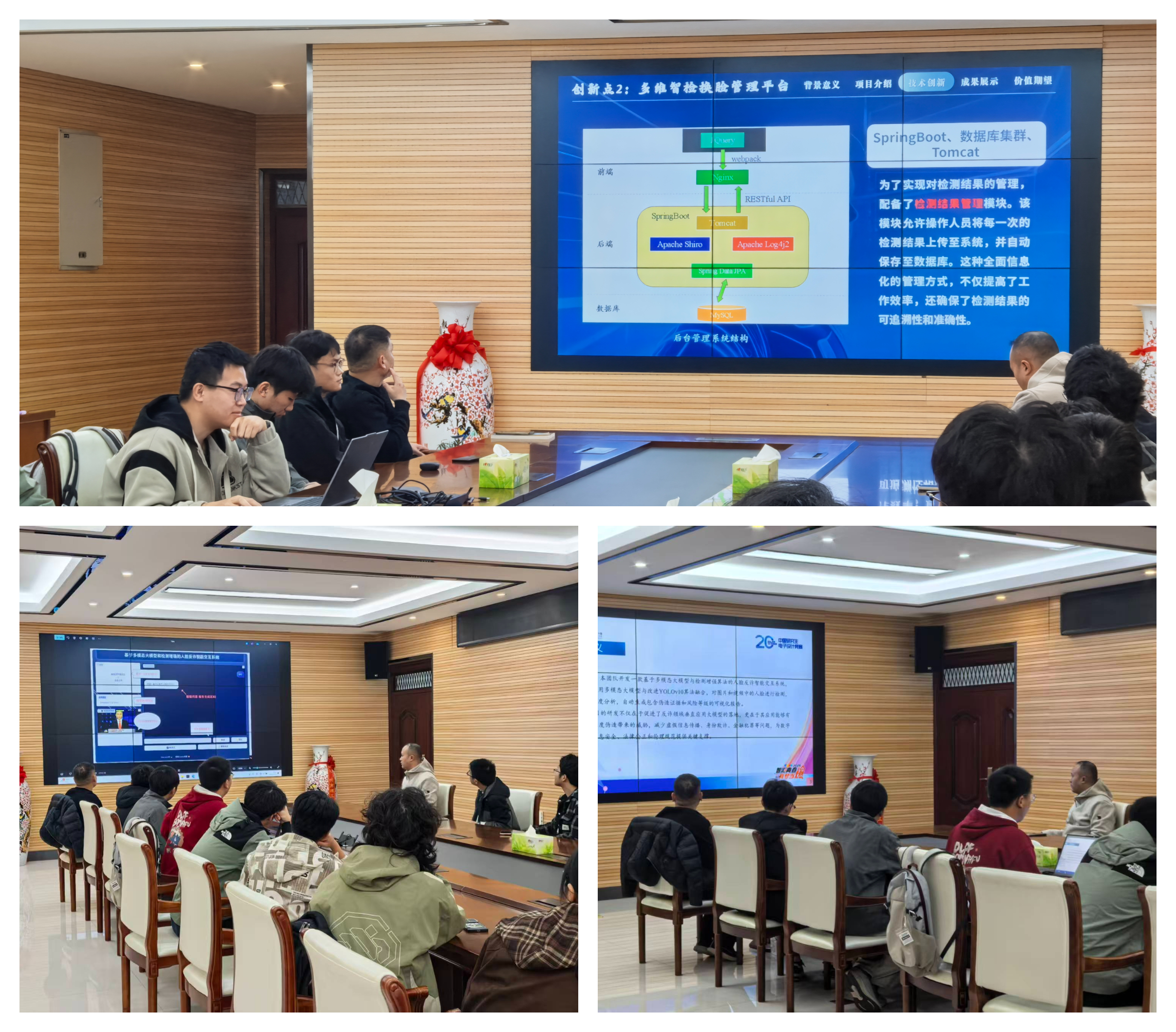 在交流环节,人工智能系研究生代表分别就各自的研究方向进行了汇报分享,内容涵盖多模态大模型、人脸鉴伪检测、人物目标识别等多个前沿领域。研究生们结合项目进展与实验成果,展示了人工智能技术在不同领域的应用潜力,为微专业同学提供了丰富的科研视角和实践启发。微专业学生也积极发言,围绕课程设置、实验资源、项目参与等方面提出建议,与会教师认真听取意见并逐一回应,现场气氛活跃融洽。