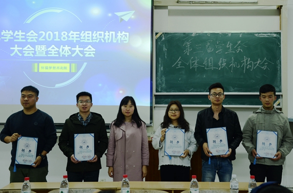 会议伊始,学生会主席吴浩洲介绍了学生会运行机制和设立原则,常务副主席张维星为大家宣读了学生会的各项规章制度。霍静娟老师向同学们讲述了我院学生会组建历程以及自成立以来所取得的成绩和荣誉,指出了工作的不足与问题,并对今后的工作提出了三点要求:一是希望全体成员端正态度、提升能力;二是要求在工作中注意程序和方式方法;三是各部门要加强协作、注意细节。随后,她分别为新一届主席团、各部部长颁发了聘书,以此表示对学生会干部的肯定与鼓励。紧接着,学生会各部部长以PPT的形式依次介绍了各部门的工作、职能、人员,以及对未来的展望与规划。最后,由学生代表康星上台发言,代表全体干事表达了他们的斗志及对未来工作的热情。至此,此次会议画上了圆满句号。