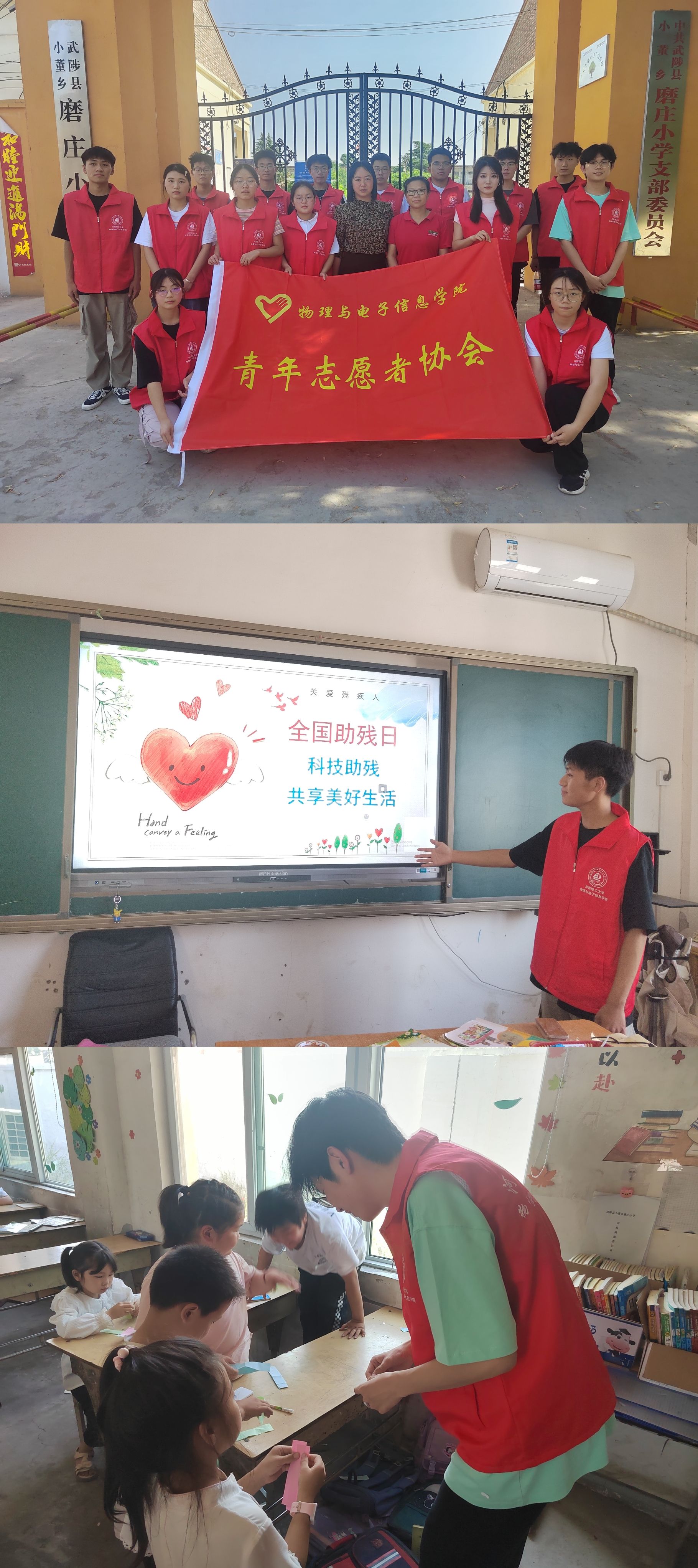 绿阴冉冉,浅夏悠悠,道别春暖,迎接夏暑。在春夏交替的五月,为了推动落实各项保障残疾人权益措施,营造扶残助残的良好社会环境,同时助力乡村教育事业繁荣发展,物电青协环保支教部相关负责人于5月14日14:30带领志愿者们前往磨庄小学,开展了主题为“科技助残,共享美好”的支教活动。