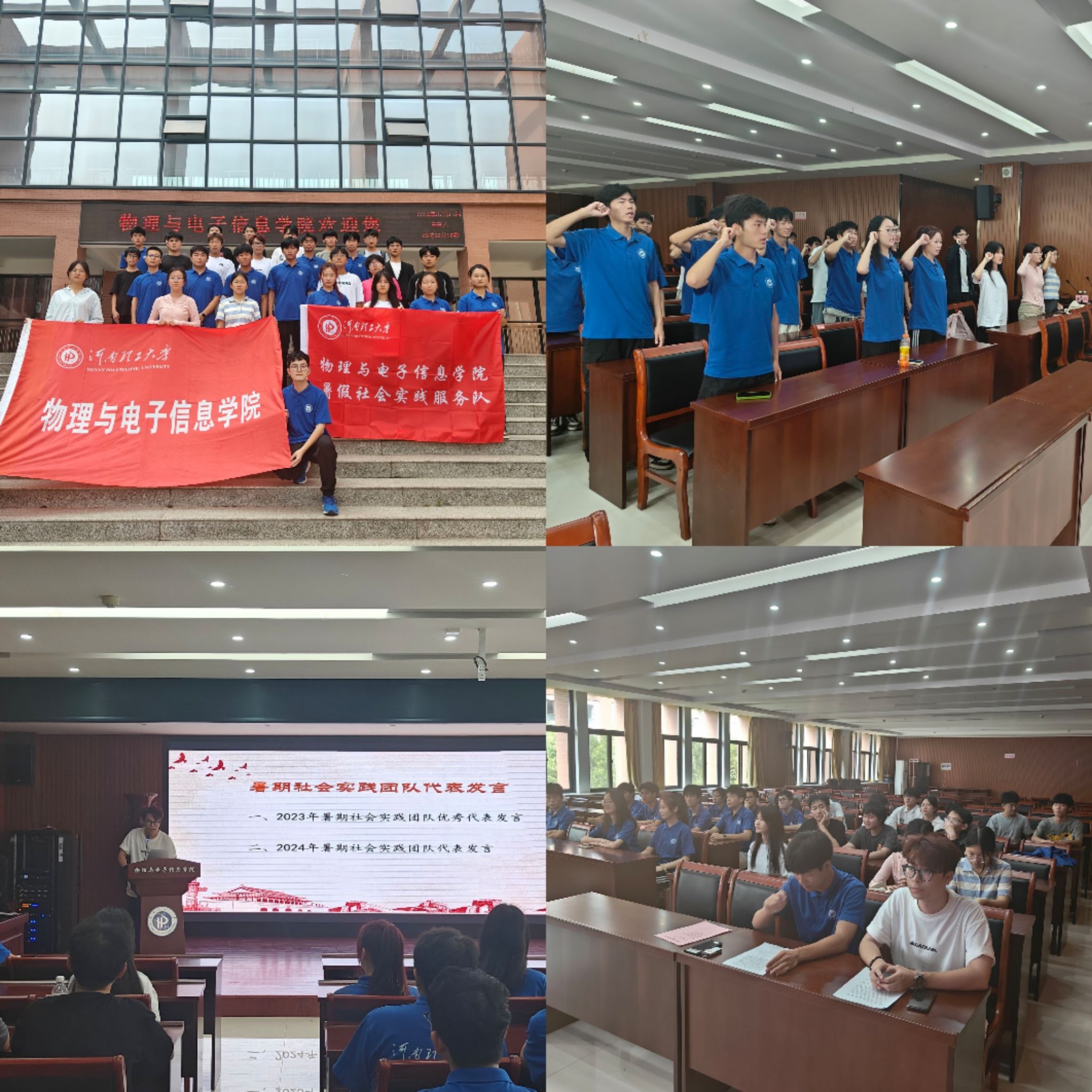 为深入学习宣传贯彻党的二十大精神,引领学生立志做有理想、敢担当、能吃苦、肯奋斗的新时代好青年,培养其社会责任感和实践能力,增进成员之间的协作与团结。我院于7月13日下午在综合实验楼226举办2024年暑期“三下乡”社会实践活动出征仪式,我院四支实践团队和2023年暑期“三下乡”社会实践团队优秀代表孙江宇同学参与此次出征仪式。